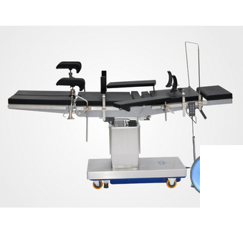 電動手術臺(JHDS-99D型)主要規格:長 2100mm寬 500mm臺面最高 1000mm臺面最低 750mm本產品供醫院手術室施行頭、頸、胸腹腔、會陰及四肢等外科及婦產科、五官科、骨科等手術,臺...