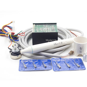 C6 牙椅內置式超聲潔牙機技術參數:型號: C6尺寸: 188×154×60mm毛重: 0.35kg適配電壓: 24v功耗: 3-20w電源: 牙椅供電功能: 潔治適配工作尖: T型震動頻率: 28-...