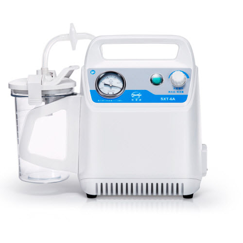 SXT-6A手提式吸痰器性能特點:1.采用無油自潤滑真空泵作負壓源,無油霧污染,壓力系統不會產生正壓。2. 負壓調節系統可根據痰及粘液的粘稠度作無級調壓。3. 溢流保護裝置可以防止吸入的液體進入中間管...
