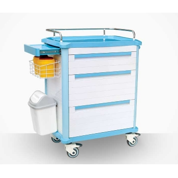 ABS治療車 FG-E-04產品概述:尺寸:783*504*940MM1.臺面采用ABS模具成型,車體輕便,容易清潔;上臺面配透明軟玻璃。2.立柱采用3MM厚度鋁合金型材,強度高,耐磨抗腐蝕,外形美觀...