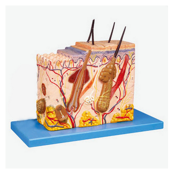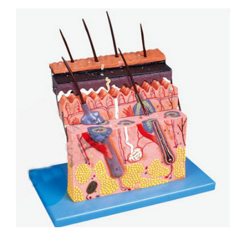 GD/A41001皮膚層次切面放大模型產(chǎn)品介紹:1、該模型由表皮和真皮各分兩部分共4個(gè)部件組成,借皮下組織與深層組織相連,并顯示表皮、真皮組織層次結(jié)構(gòu)以及皮下組織和皮膚附屬器(包括毛、皮脂腺、汗腺和神...