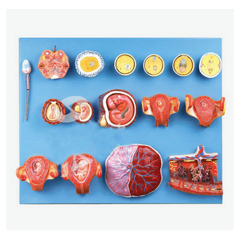 受精與早期胚胎發(fā)育過(guò)程模型 GD/A42002功能介紹■該模型由精子、卵巢、卵子、受精卵發(fā)育過(guò)程、胚盤、2-9周胚胎以及3月胎兒、胎盤等16個(gè)部件組成,并顯示從卵細(xì)胞發(fā)育到3月大小胎兒形成的人類早期胚...
